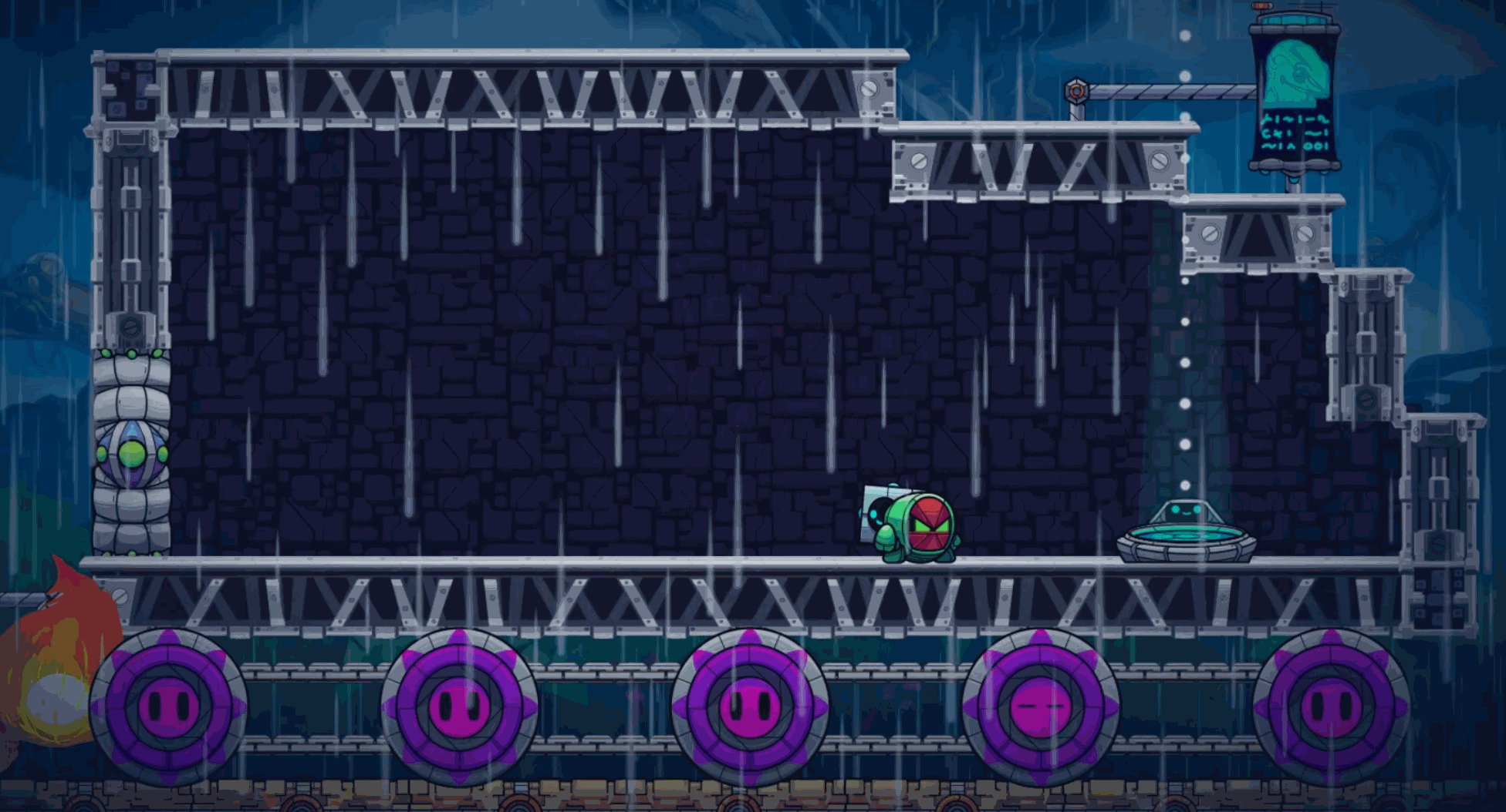 GR-18 is on the quest for delivery in Myst's thrilling level Fiery Crash Bridge. Will GR-18 finds its destination at the end of the bridge?
