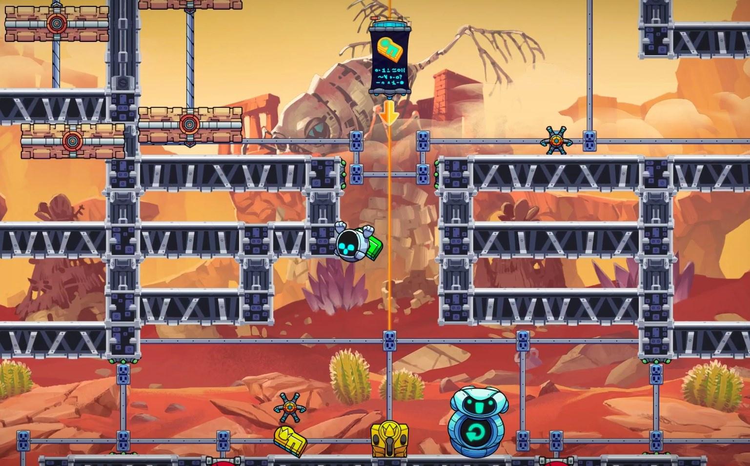 GR-18 climbs down the magical stairs in atoomi's colorful level Cloud In Alien Cave. Has GR-18 found the magical path to its soul-package?
