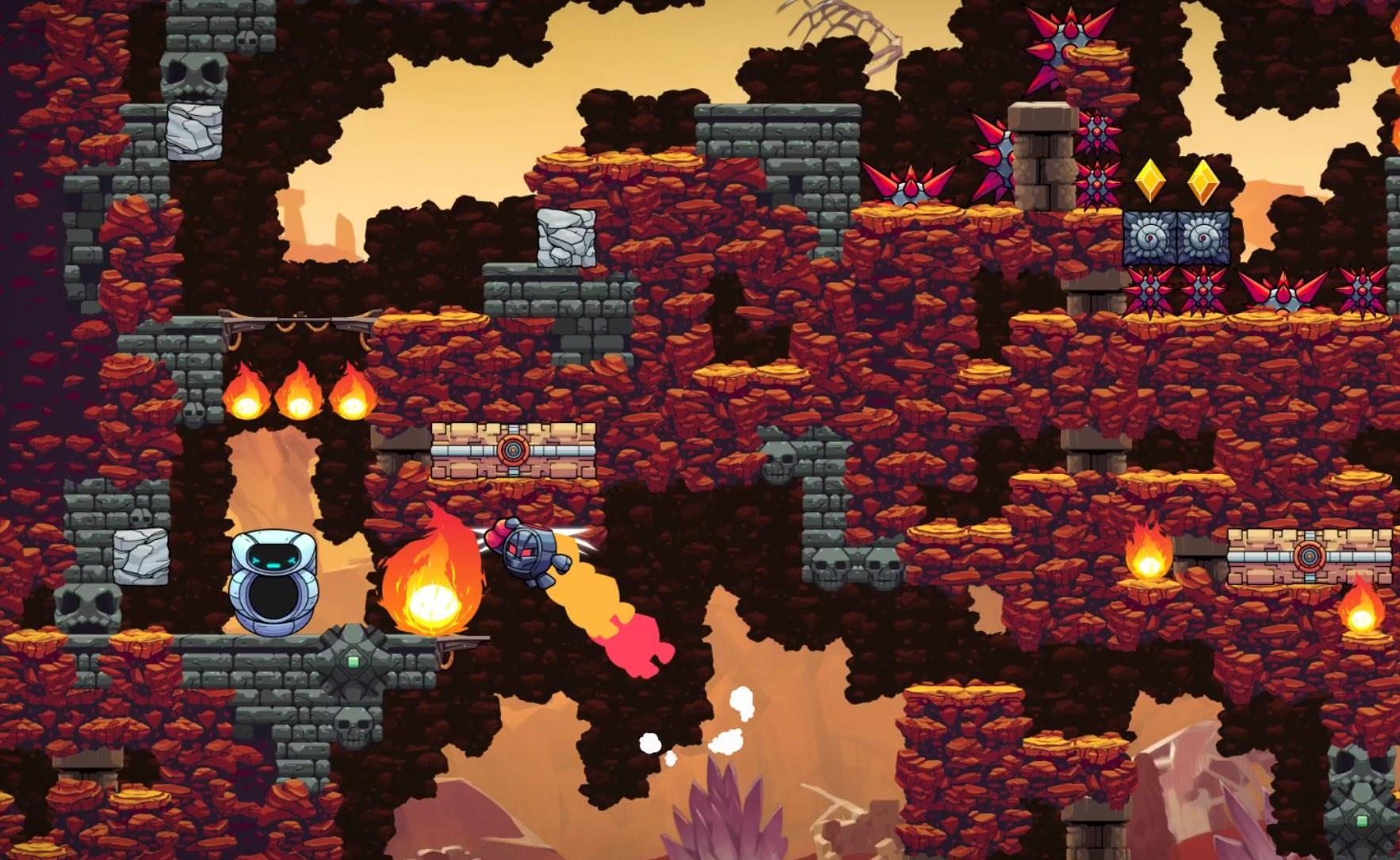 GR-18 is tricker treating in DuckBag's bewitching level Map City Facility. Will GR-18 find the package of treats or be tricked by spikes?