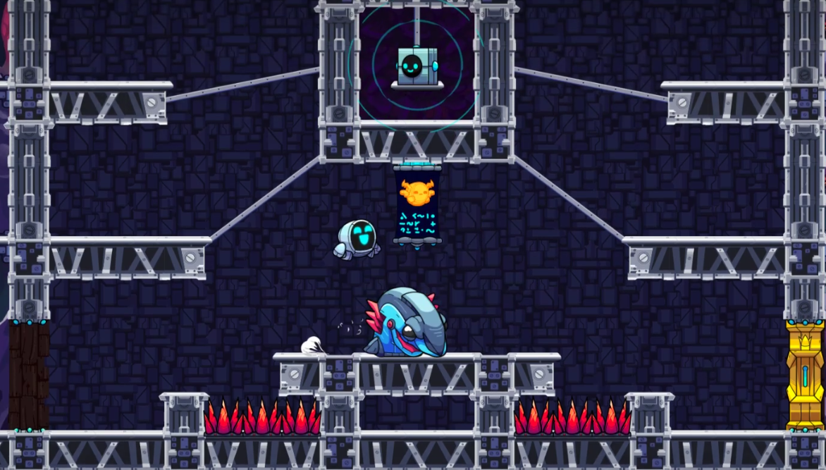 GR-18 ventures in spike land for shady business in Noob Jr's murky level The Kronkrete Jungle. Will GR-18 emerge from the depths of stone & spike jungle?