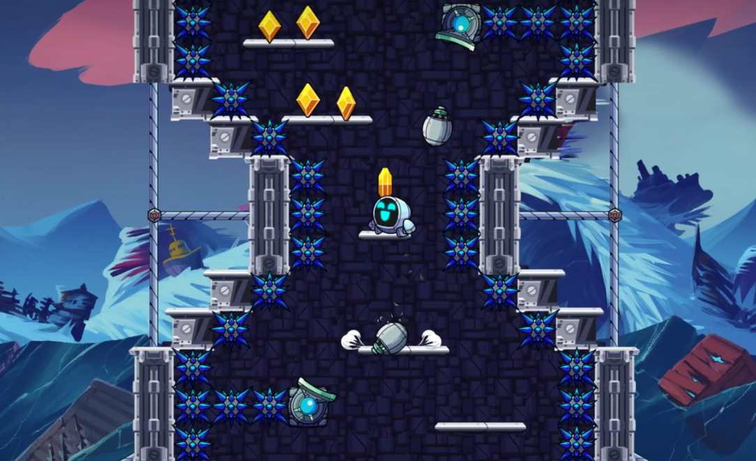 GR-18 dodges flying hazards in Dearg Doom's dangerous level Nimble Rocket Tower. Will GR-18 spread its wings to reach the top?
