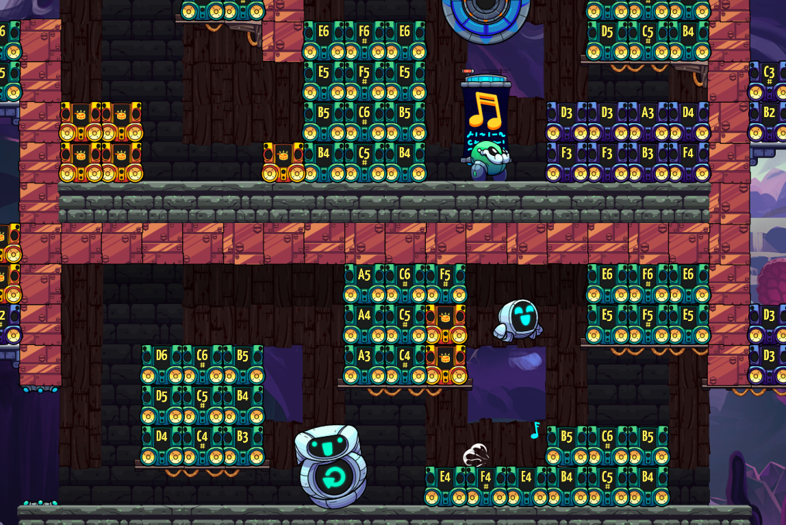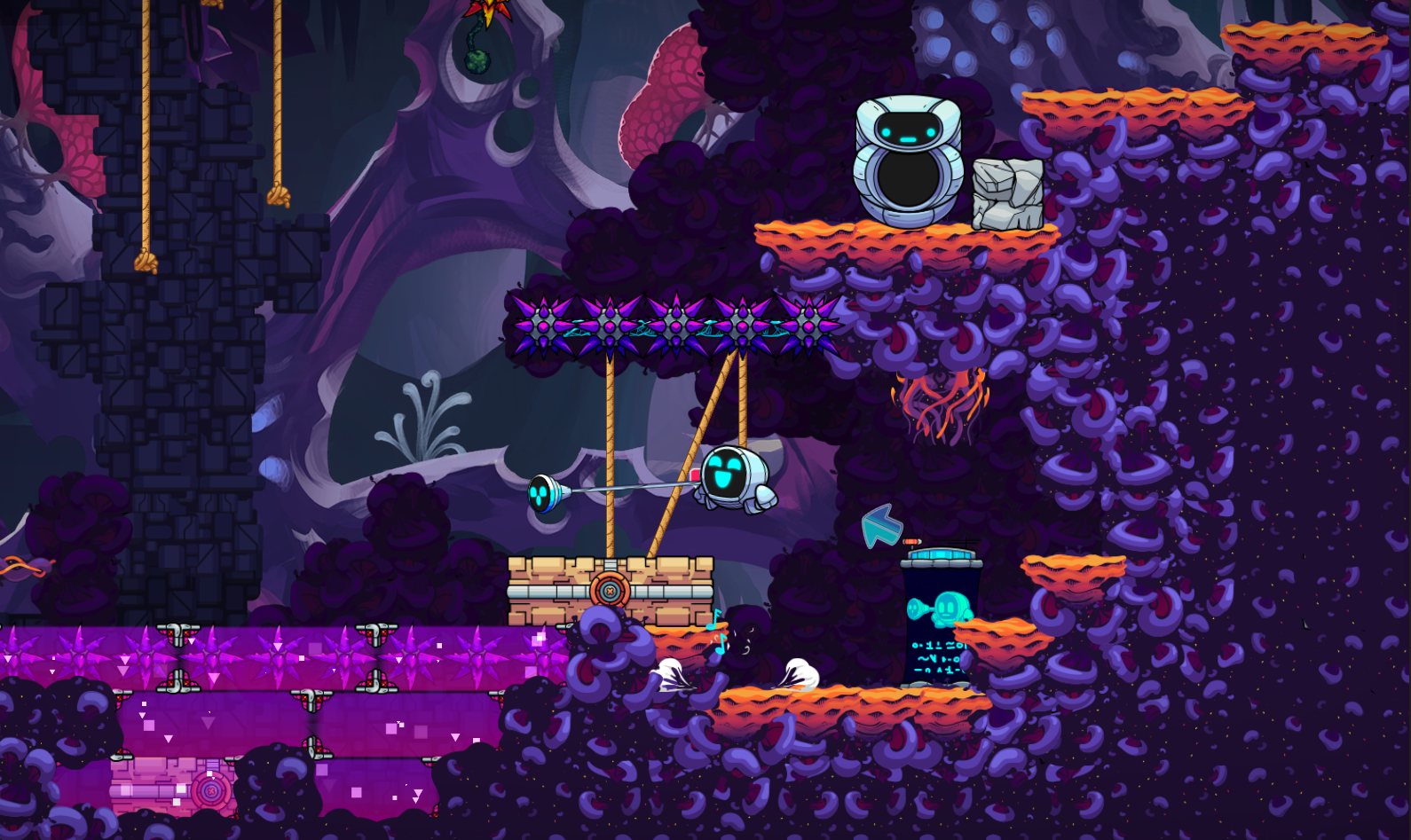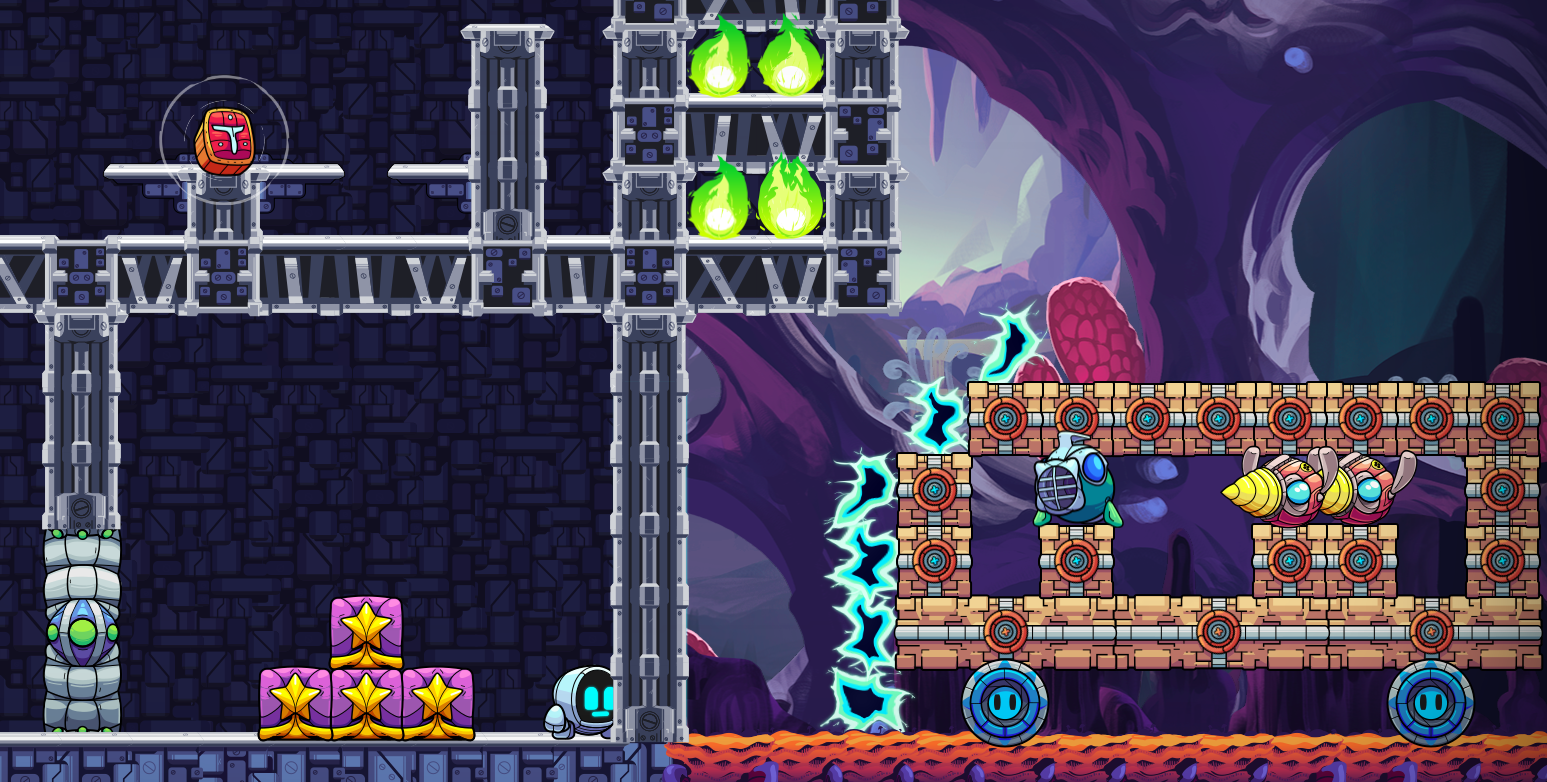 GR-18 dons its hiking boots and polishes its tow cable before setting off to explore Saltbearer's excellent level Trek From Asteroid Outpost. Traverse falling platforms and pull ropes as you wander and discover what secrets this mysterious alien landscape holds.