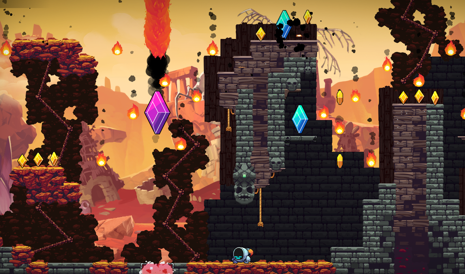 In Skyjengi's exciting level Fire Fall Gulch, fire erupts from the ground and returns as a dangerous shower of fireballs. Don't get hit by the heat, GR-18!