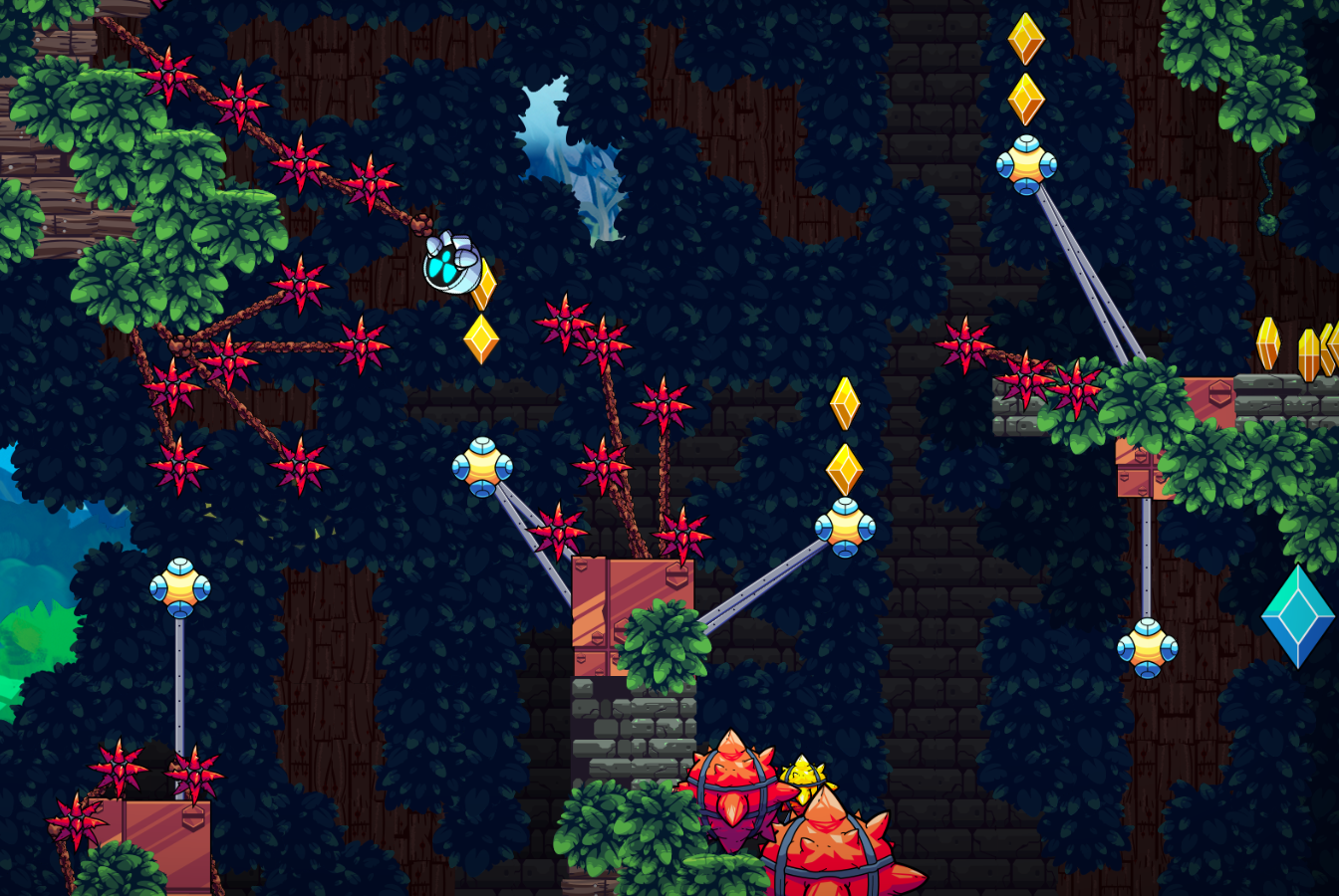 GR-18 works on its cardio through energy-intensive gymnastics as it swings through a dangerous jungle in Green0ne's gorgeous flingo-centric level Forgotten Flingo Swing. You'll need reflexes as sharp as a spiketron to navigate your way to the goal.