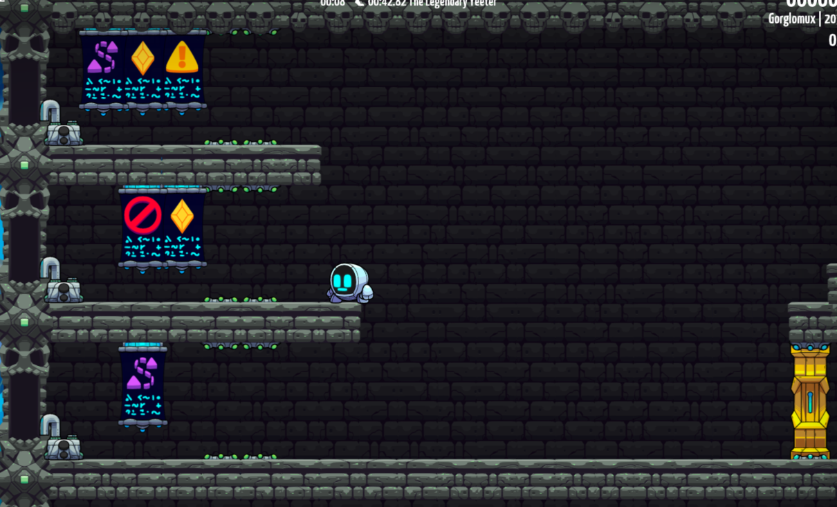 Gorglomux has something for everyone in the level The Mechanical Tower. If you like collecting gems, you can do just that! If you like to speed run... well you can do that too! BUT WAIT THERE'S MORE! Play to find out!