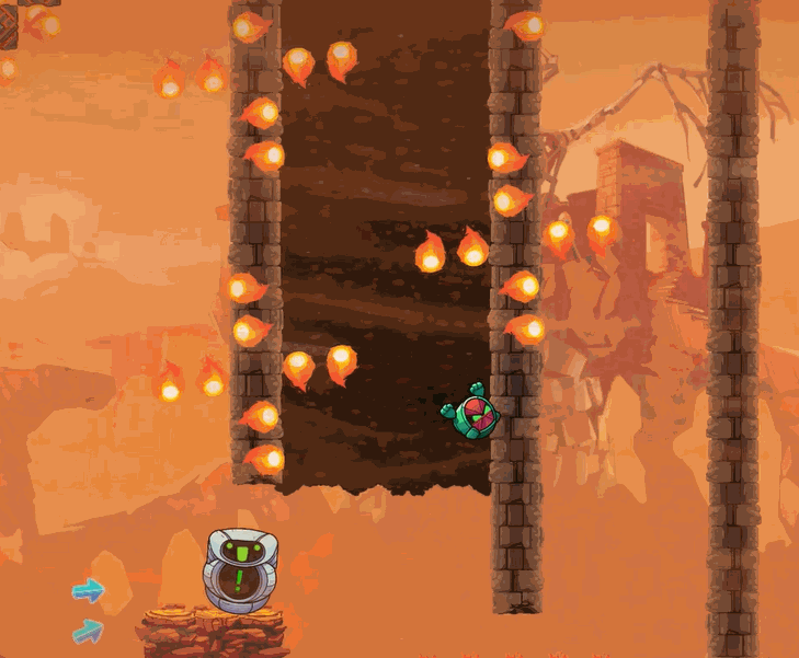 In Delirious' well-paced level Forgotten Fire Treasure you'll use your mutant powers (aka powerups) to stay ahead of the game! Be ready to punch, jump and fly your way through the pain.