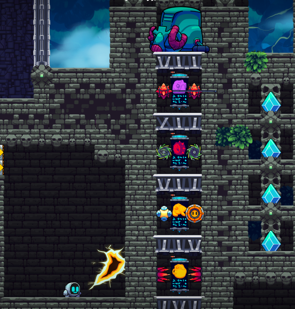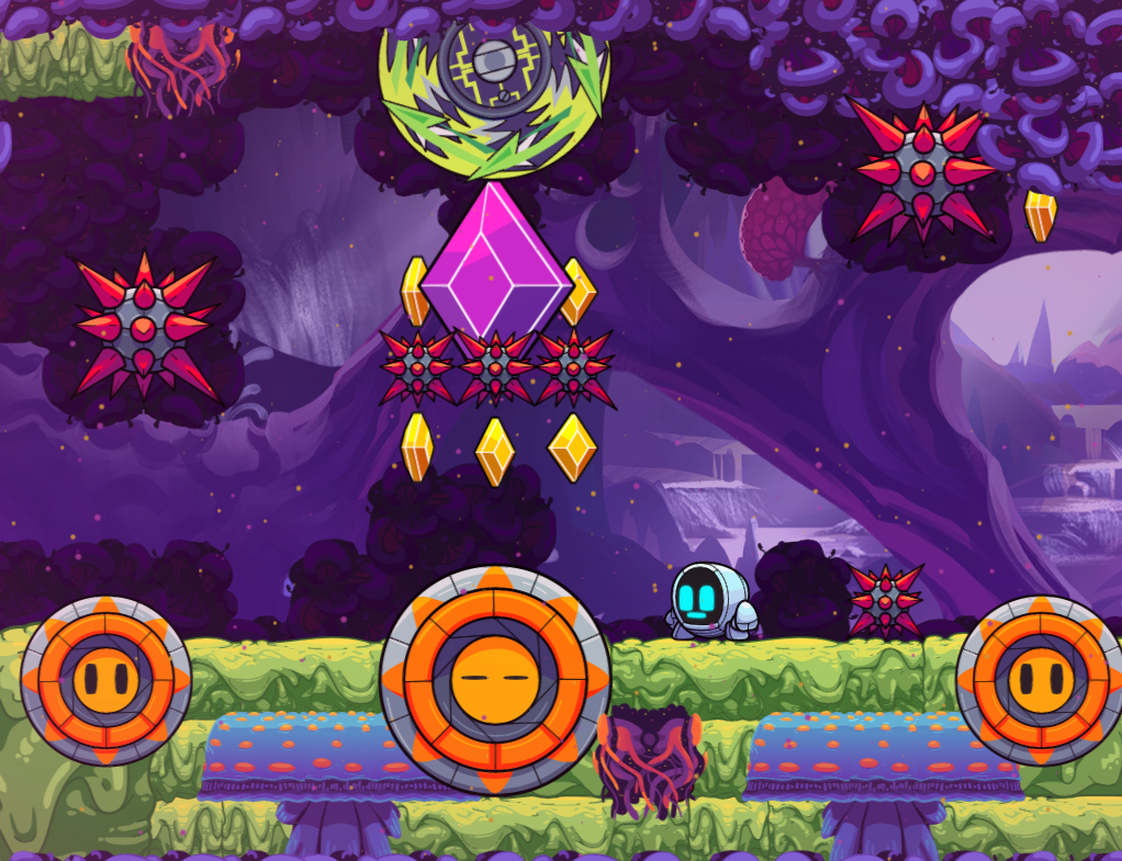 To navigate the level No Ground? No Problem! Skellythesci has you go through the multiple colorful personalities (aka power-ups) of GR-18. Enjoy the craziness!