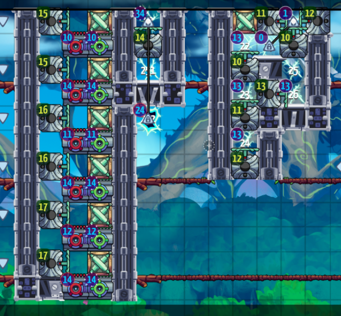 This level simulates a battle in the style of the early Pokemon games, using Levelhead objects to create health bars, a creature selection screen, and a real turn-based battle system. As is common in a Joe Ah Oh contraption, Joe left an opening at the end of the level so you can inspect how the machine works. Let's peek behind the curtain!