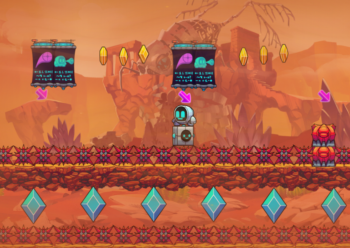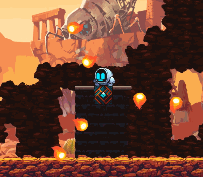 In VO2's mystery filled level Hot Canyon Mystery, GR-18 puts on Indiana Jones' Hat to find all the hidden paths and treasures!