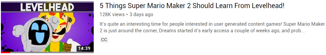 Youtuber Ceave, known for his exploration of the finer mechanics of Super Mario Maker, took our title for a spin and compiled a video of the 5 things Super Mario Maker can Learn from Levelhead . Seeing someone who so thoroughly got what we're trying to do was great to see... and it brought a fresh wave of players into the game, making us hit our highest concurrent player count ever! WAHOOO!