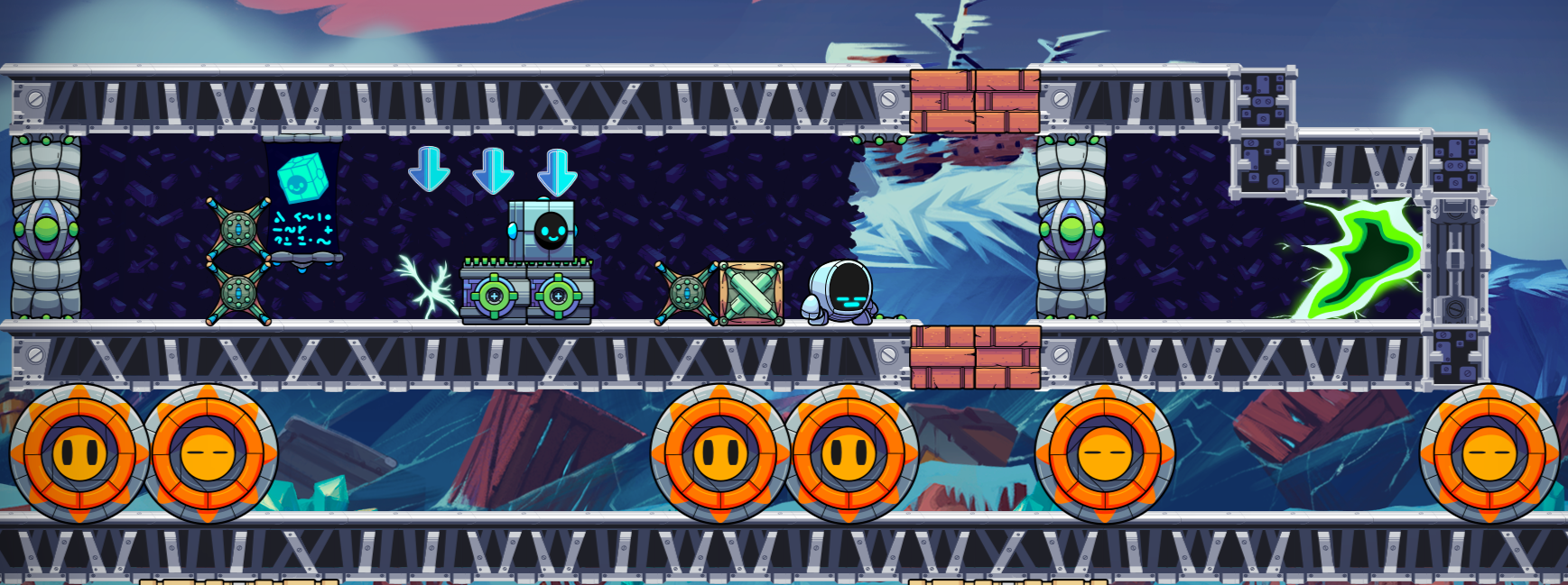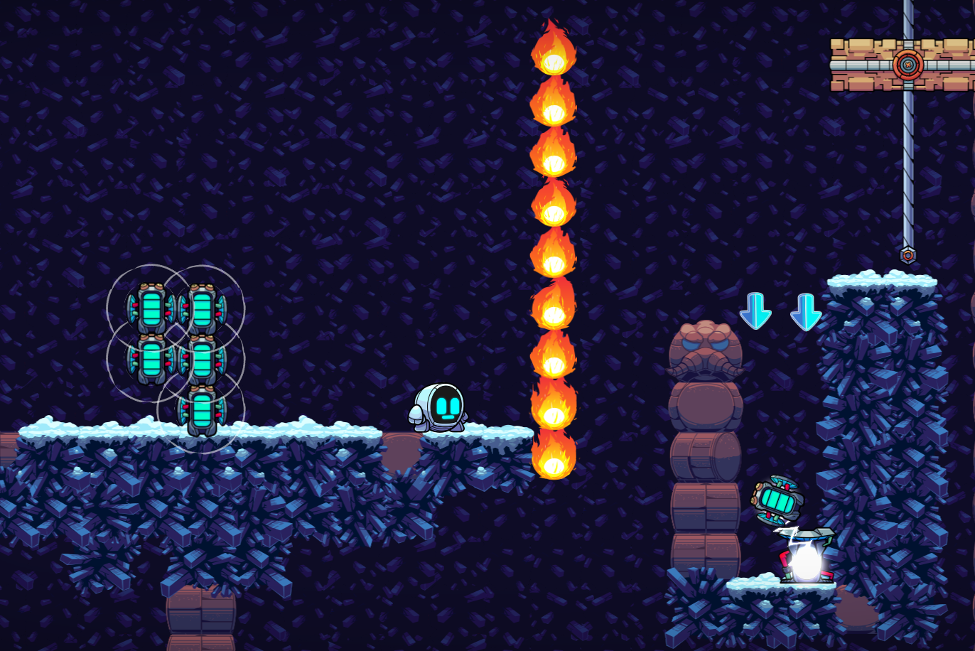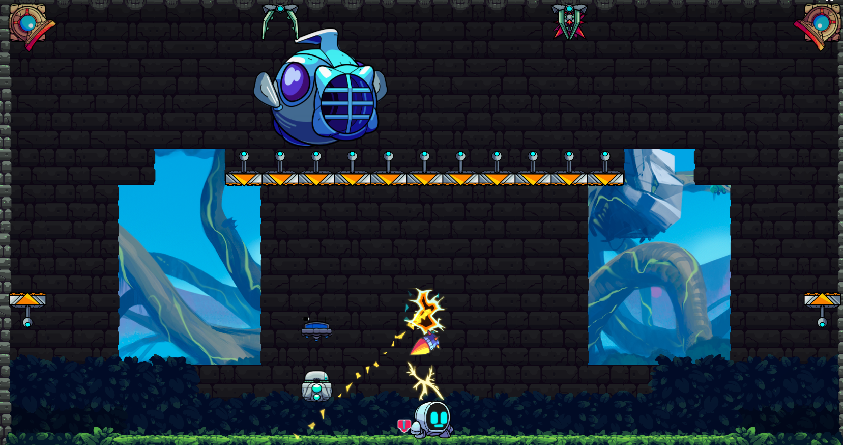GR-18 is training for the Robo-Olympics in Spekio's killer level Wily Machine Fortress. GR-18 will get to practice the Robo equivalent of shooting clay pigeons: FLAMING BLOPFUSH! Let's work on that accuracy!