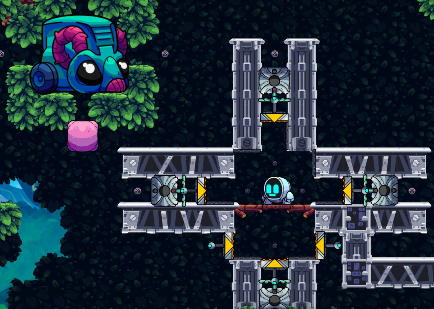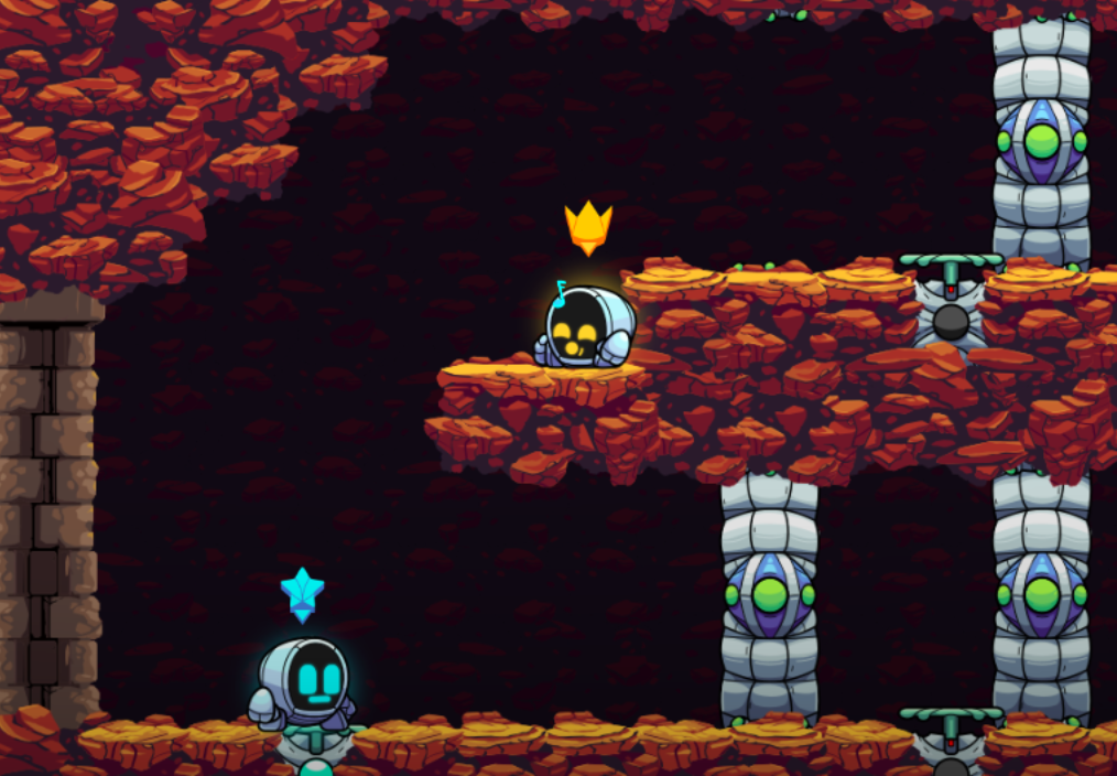 Contraptions are one of our favorite parts of Levelhead. Using the randomness generated by portals, TalkGibberish managed to recreate the classic memory game Simon Says as Vacrat See, Vacrat Do (bookmark)! Each run presents a different memory challenge, and the finale lets you do a fly-by of the off-screen logic required to make the contraption go.
