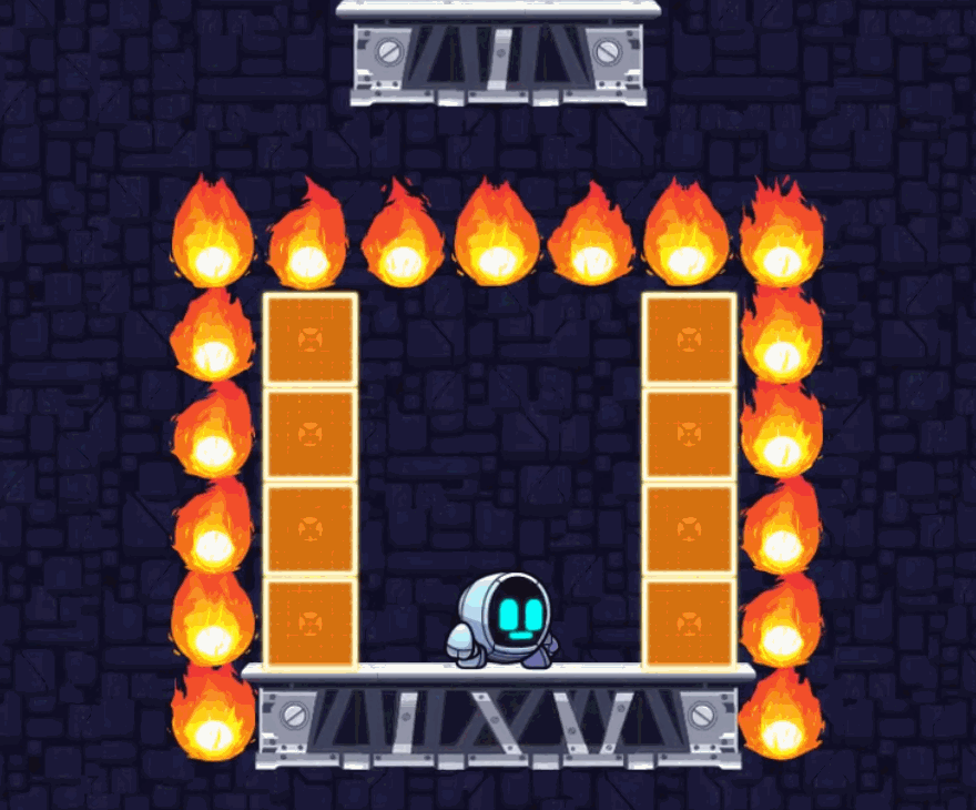 GR-18 gets to be COOL in Friendzie's fiery level Surprisingly Dangerous Shade! Cool Robots don't look at explosions - they turn around and just walk away.