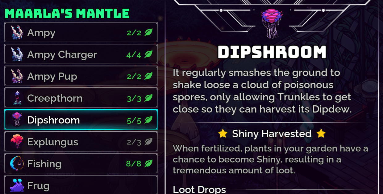 We’re continuing to expand the Compendium in Update 1.2 to provide more information about your adventures. Now, you’ll be able to see whether you’ve harvested the Shiny version of a plant, like so: