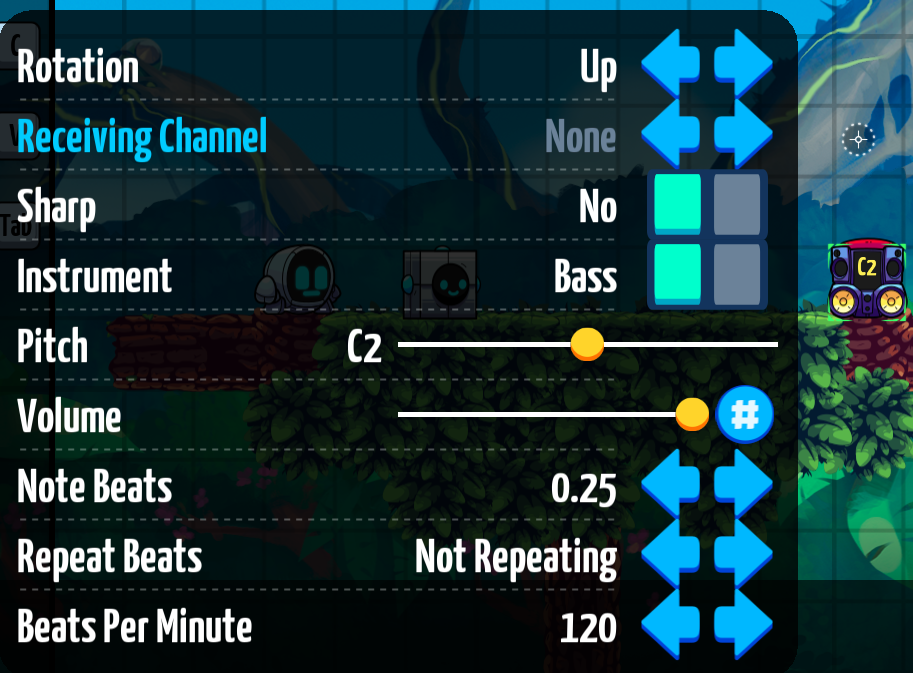 You can now set a Boombox's "Beats Per Minute", as well as how many beats its note lasts, and you can make it repeat on a beat count, too! This should make it far easier to turn your favorite songs into Boombox songs, since you no longer have to try to convert beats into seconds on your own.