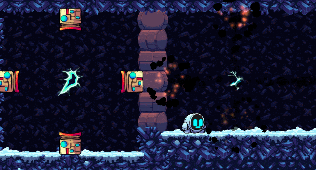 This patch introduces a whole new item: the Flingo! Flingos are little electromagnetic nodes that GR-18 can latch onto with its grappler to fling itself across great distances. There's even a little bit of elasticity in there -- if you grapple from farther away, you'll get a bigger fling!