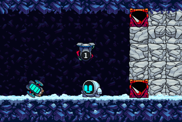 The Tempswitch is the most versatile switch we have added to the game. At its most basic usage, it simply flips for a short duration, and then flips back. For an obvious use case, you can use it to create a temporary batch of Jems that the player has to collect before the time is up.